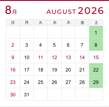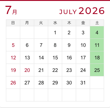 CALENDAR土日クラスのスケジュール